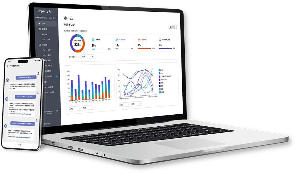 『Property AI』です。不動産の物件の管理を行っている人たちに対して役立つAI、という意味です。まだ効果は出たとは言っても弊社内でさらに改善したい点はたくさんあるので、引き続き『AMBITION Me』の入居者の問い合わせをまず軸に、ここをこう効率化していきましょう、より良い顧客体験にしていきましょうというものをやっていって、その中で効果があったもの、良かったものをこの『Property AI』の方にどんどんオプションか基本機能として実装していくことで、より不動産会社にとって使えるチャットボットになるんじゃないかなと。社内向けには『AMBITION Me』をブラッシュアップし、そのナレッジやノウハウを全て投下したのが『Property AI』と言えます。